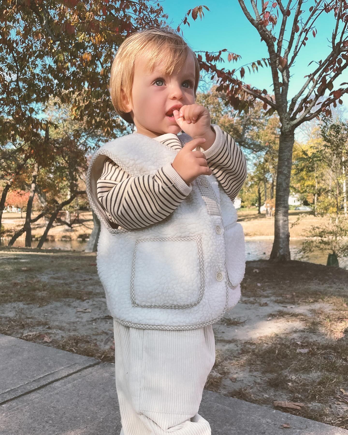 This Baby Sleeveless Soft Fleece Vest in Brown features a lightweight yet cozy fleece material, making it an ideal choice for layering over both indoor and outdoor clothing. The stylish design ensures that your baby stays fashionable while being protected from the cold.